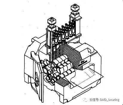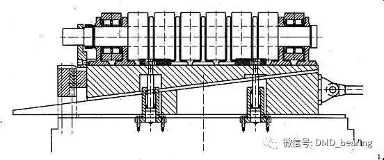 森德威克軋機的支撐輥徑向調(diào)整機構(gòu)在A、D輥上,通過直接移動鞍座位置來使固定心軸產(chǎn)生彎曲變形,其輥形調(diào)整基本原理和森吉米爾軋機是一樣的。