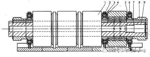 1背襯軸承;2鞍座;3滾針軸承;4外偏心環(huán);5齒輪片;6內(nèi)偏心環(huán);7軸;8扇形齒輪;9鍵