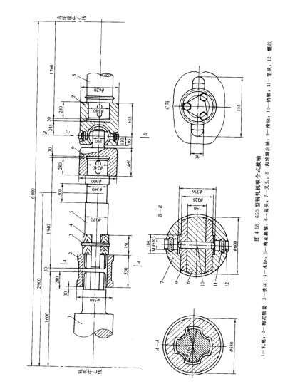 圖4-18所示為650型鋼軋機聯(lián)合式接軸沒音在傳動端采用萬向接軸形式,避免了梅花接軸的間隙大,沖擊載荷大的缺點,從而改善了齒輪輥的工作條件。在軋輥端采用梅花接軸,則保持了換輥方便的有點。