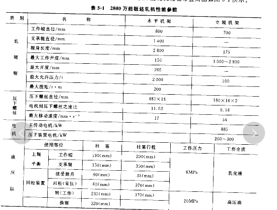 ****軋機(jī)是由水平配置的二輾(或四輥) 和一對(duì)立輥共同構(gòu)成的軋機(jī)。用于板坯初軋機(jī)或熱軋板帶開(kāi)坯機(jī)。普通型 2800 ****板坯軋機(jī)設(shè)備性能見(jiàn)表 5-1,可軋出厚度為 19~30mm,寬度為 600~1 500mm 的帶鋼半成品。該****軋機(jī)軋輾輥布置簡(jiǎn)圖如圖 5-1 所示。